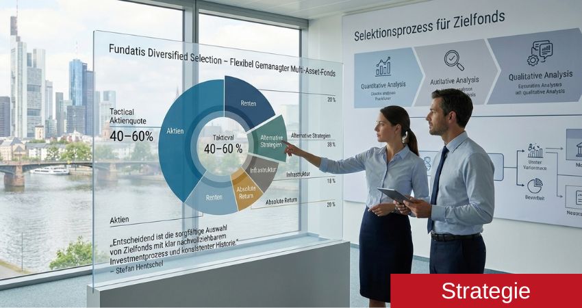 Der Fundatis Diversified Selection positioniert sich als aktiv gemanagter Multi-Asset-Fonds, der bewusst über klassische Mischfonds-Konzepte hinausgeht. Im Zentrum der Anlagestrategie steht ein breit diversifizierter Vermögensmix aus Aktien- und Rentenanlagen, zusätzlich werden gelistete Immobilien-, Infrastruktur- und Private Equity Investments sowie ausgewählte thematische und alternative Strategien eingesetzt. Ziel ist es dabei, in unterschiedlichen Marktphasen ein überdurchschnittliches Rendite-Risiko-Profil zu erzielen. Der Ansatz ist gedacht, privaten und kleineren institutionellen Anlegern einen Basisbaustein für eine ganzheitliche, langfristige Vermögensanlage bereitzustellen.