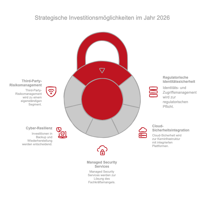 Für 2026 ist zu erwarten, dass Identitäts- und Zugriffsmanagement zum zentralen Prüfpunkt in Audits und Aufsichtsverfahren wird. Zero-Trust-Architekturen werden nicht mehr nur empfohlen, sondern faktisch vorausgesetzt. Anbieter mit skalierbaren IAM- und PAM-Lösungen profitieren von dauerhaft hoher Nachfrage.